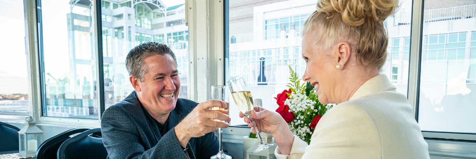 Enjoy a guaranteed private table on our observation deck with the best view in town. Your table will be dressed with a white table cloth and centerpiece. Enjoy our live music as you dine and enjoy the spectacular views of Mobile’s riverfront. Looking for the perfect extra touch, add one of our flower and champagne packages! Reservations are required for our Mobile dinner cruises and suggested to be made early to guarantee seating for the date you wish to attend.