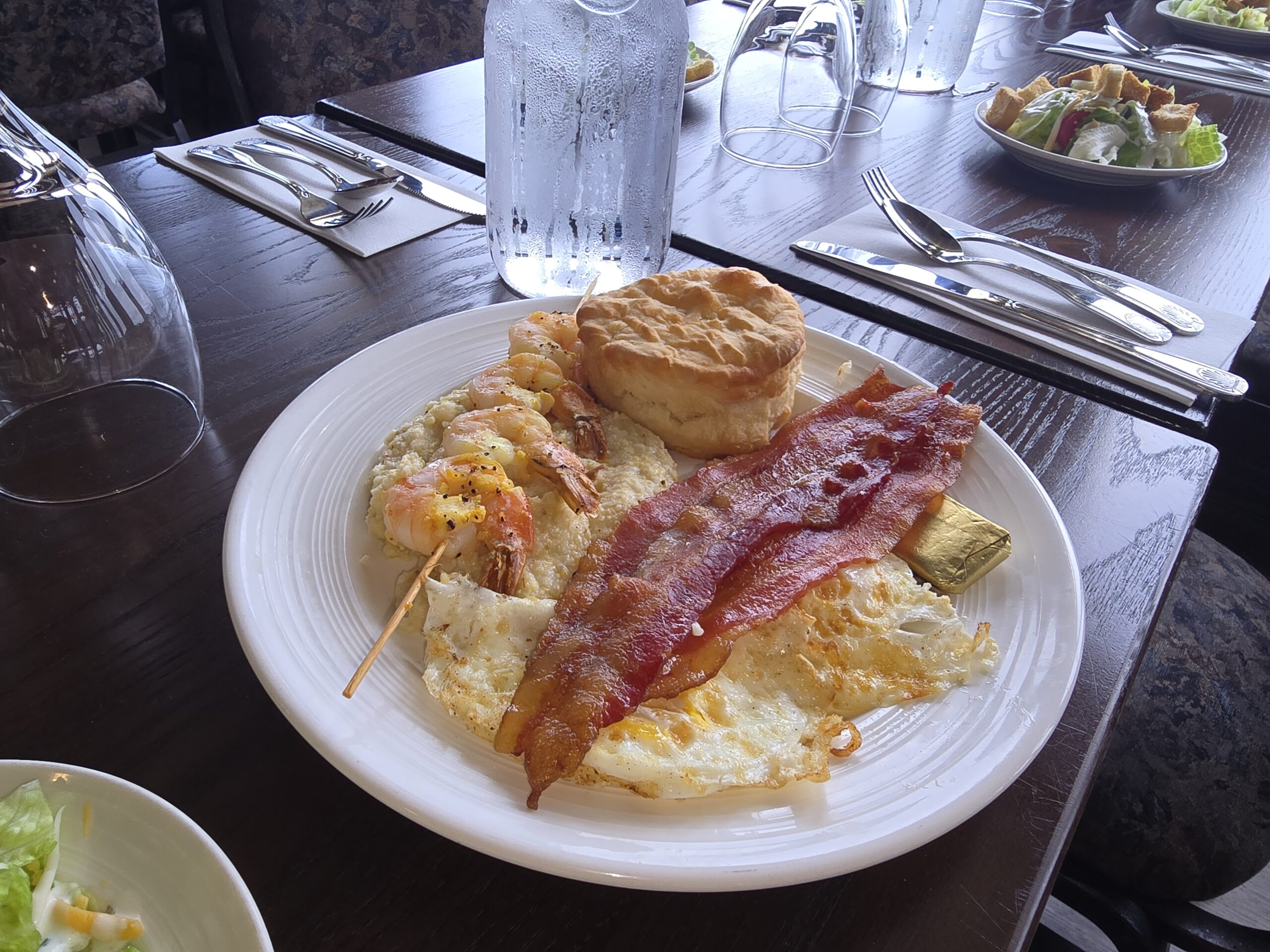 Start off your morning with a relaxing brunch with the Perdido Queen! Enjoy the calm waters of the Mobile River while enjoying light music and delicious food. Our brunch is a wonderful opportunity to have a peaceful meal with your party. It’s important to start your day off right, and our fruit salad appetizer is perfect for the job! For your main course, you’ll enjoy a warm serving of grits topped with a gulf shrimp skewer. Your sides will include scrambled eggs, two slices of bacon and a biscuit (butter, jam and honey provided!) Finally, our dessert is the chef’s choice. All the while, enjoy our house made mimosas and deliciously delightful cocktails. Our brunch menu is the perfect cozy combination of food to help jumpstart your day with family and friends.